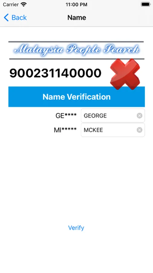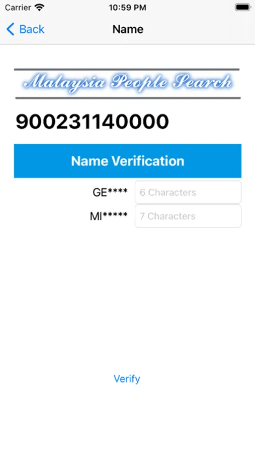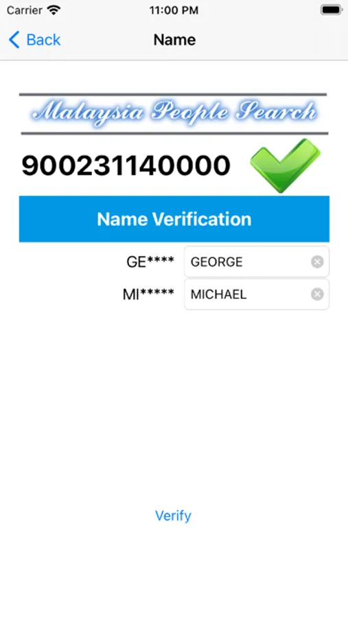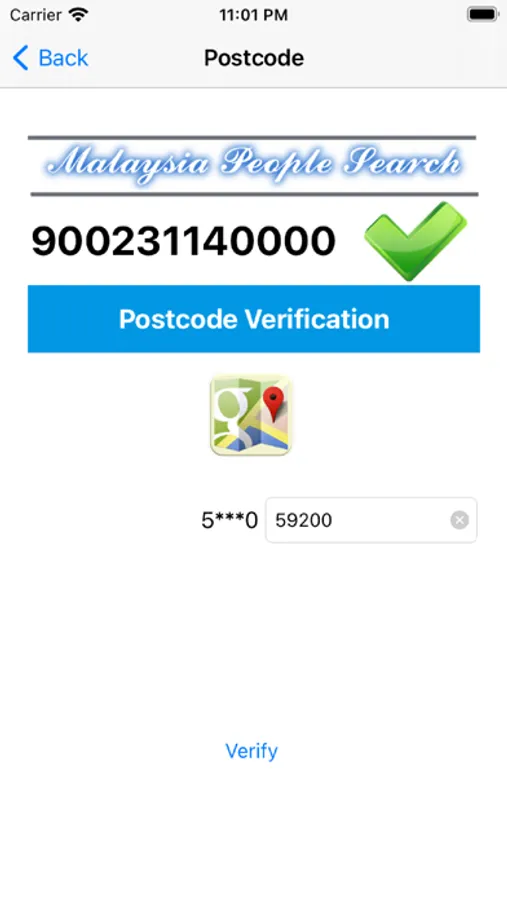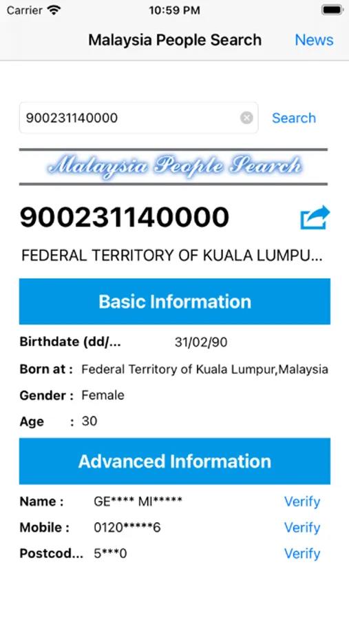 Advance information may available and only can be displayed after verification successful that include full name, mobile phone number & home address postcode.