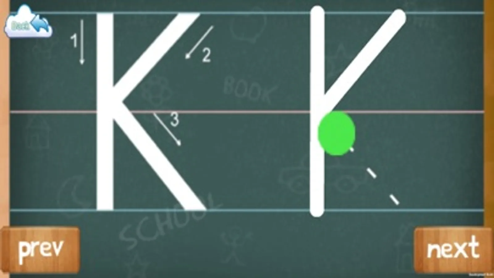 * Writing - Your child will learn how to write the letters. There will be a green board like in the classroom and dotted lines that help them write the letters from A to Z. Writing along dotted lines is definitely fun for kids!