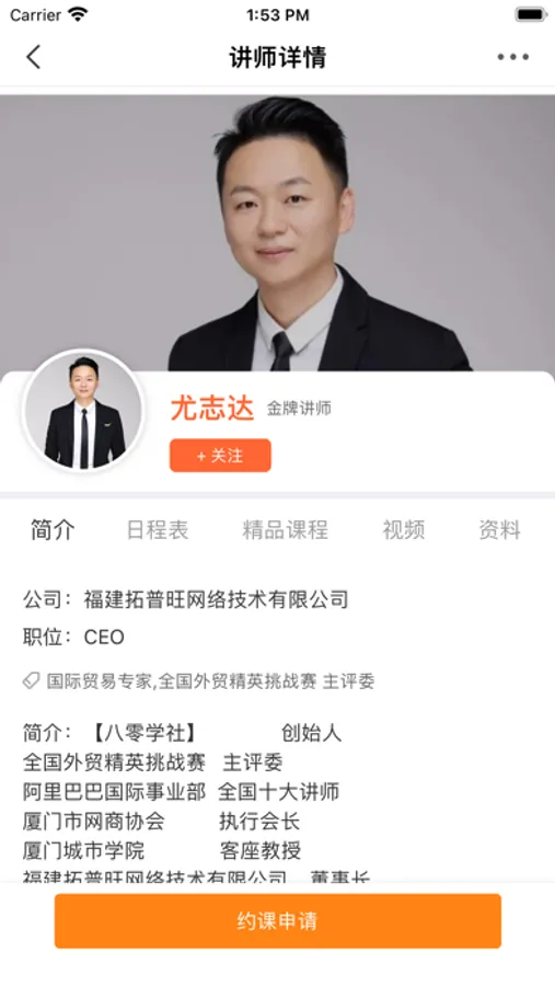 在应用里,用户可在线查看课程详情,主题详情,讲师详情,新闻资讯,咨询讲师,添加关注等功能。