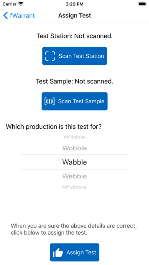 All fWarrant users have the ability to assign tests to themselves. Assigning a test is initiated by the fWarrant user and creates an immutable link between the fWarrant app and a specific test (as identified by a unique barcode). fWarrant uses barcode scanning from the mobile device to assign tests to fWarrant users.