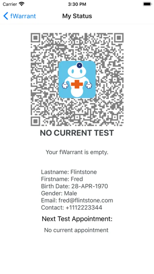 fWarrant does not provide advice or guidance with regard to the tests and results it manages. fWarrant's sole purpose is to capture healthcare test data and associated results in order to provide a digital certificate of an fWarrant user's health status.
