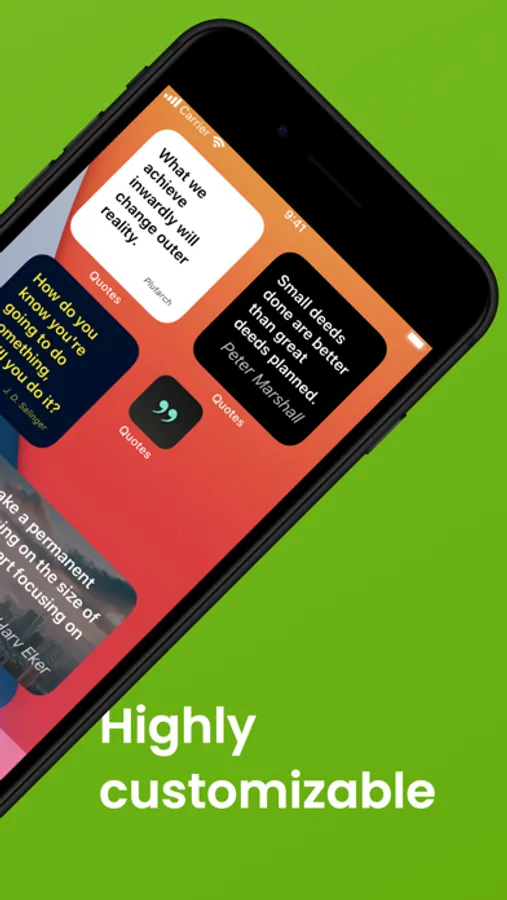 Quotes Widgets delivers multiple quotes a day right to your home screen. You don't have to worry about running out of quotes, because there are thousands of them. Widgets are highly customizable, so you can tailor them to your home screen with custom colors or background images.