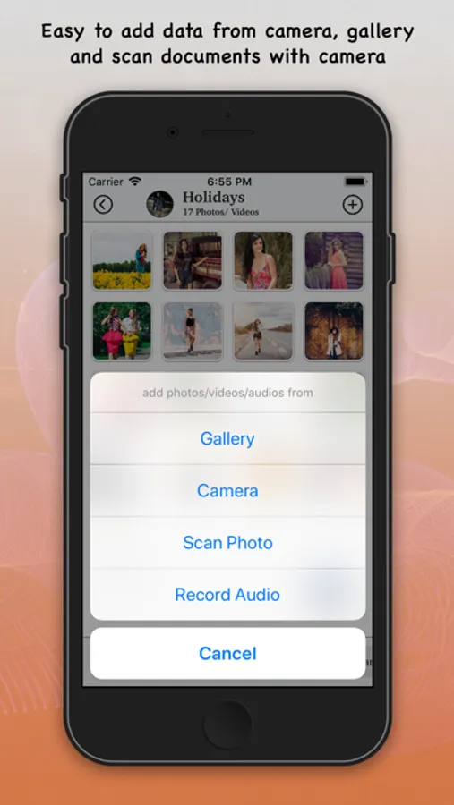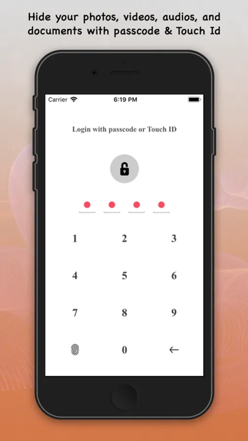 This app helps you to hide your photos and videos, scanned photos, documents and recorded audio from app with passcode lock and Touch ID / Face ID.