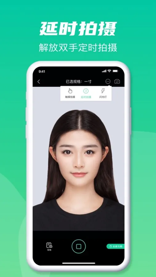 拍摄时,针对人脸位置与图框比例、眼睛视线、服装、光线等进行检测并发出提示,保证合格的证件照情况下,还可以手动磨皮、美白、瘦脸,大眼功能