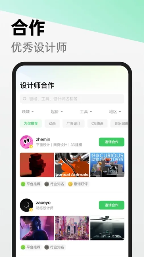 由我是一款为展示和孵化更多优秀设计作品而生的视觉创意平台。我们尊重原创设计,精选更多优秀设计作品,为从业设计师提供灵感收集渠道,也为大众的视觉审美提供新的参考标准。我们希望与众多设计师共创更好的商业设计环境,让每一个设计师都能得到应有的认可和尊重,实现他们最大的价值。