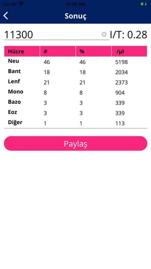Bu uygulama klinik pratikte periferik kan yayması hücre sayımı ve oranlarını saptayabilmek için tıp alanında tüm personelin kullanabileceği kolaylıkta dizayn edilmiştir.