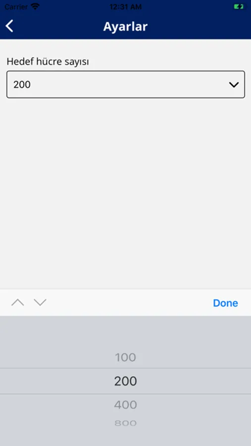 - Hedef hücre sayısı belirleme (100, 200, 400, 800)