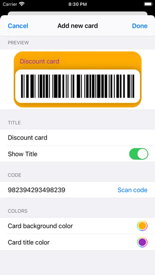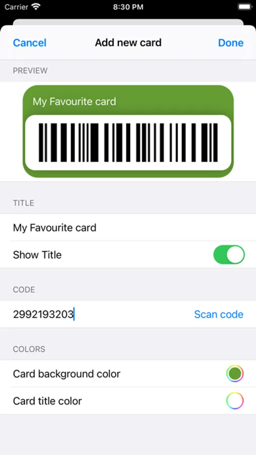 - Scan your card to add code automatically.