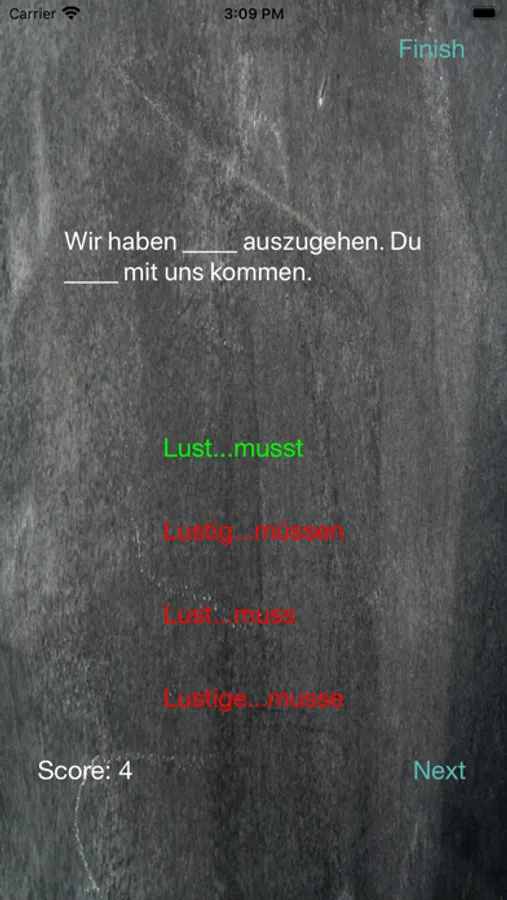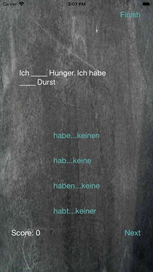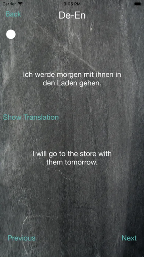 This German quiz app has hundreds of German to English sentences. Each level is geared to be progressive in nature. Aimed at an upper beginner/intermediate German learner, it is a great way to brush up on your German using progressively more difficult sentence building blocks.
