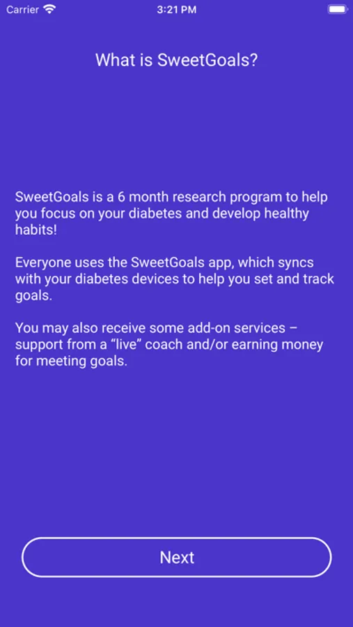 SweetGoals is a research study designed to help you meet recommendations for type 1 diabetes self-management. Using a digital coach, SweetGoals aims to provide personalized feedback to help you achieve goals and become a healthier you!