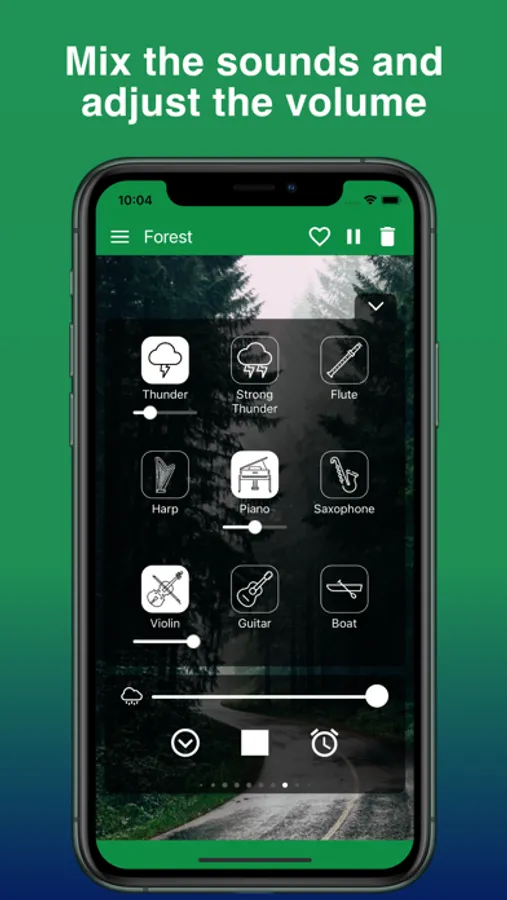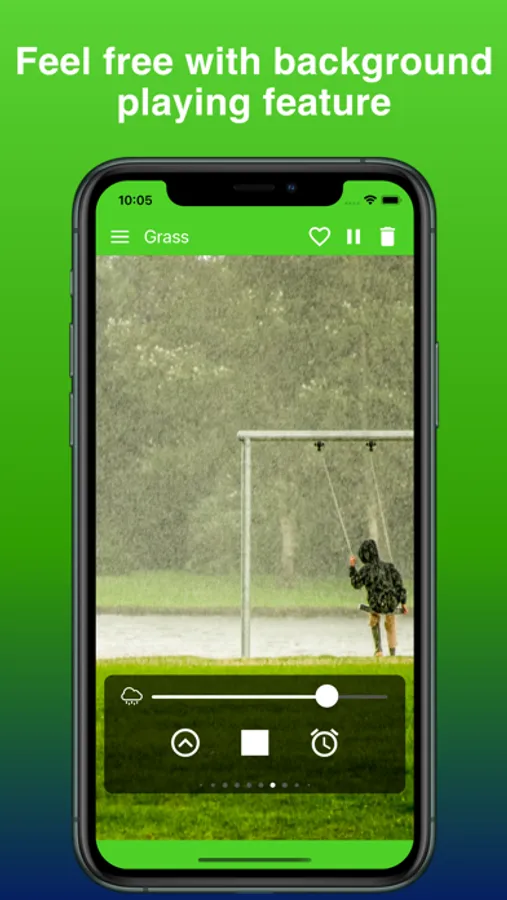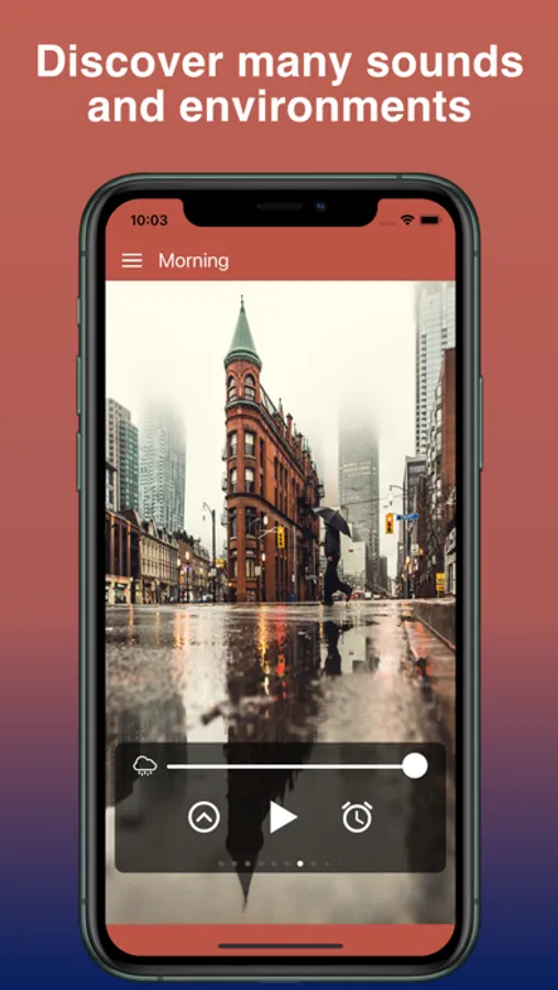 Enjoy a variety of rain sounds divided into different environments. You can mix many rain sounds, nature sounds, white noises, peaceful sounds, relaxing musics, thunderstorm sounds and adjust the volume of each of them to create your own relaxed ambience based on your mood.