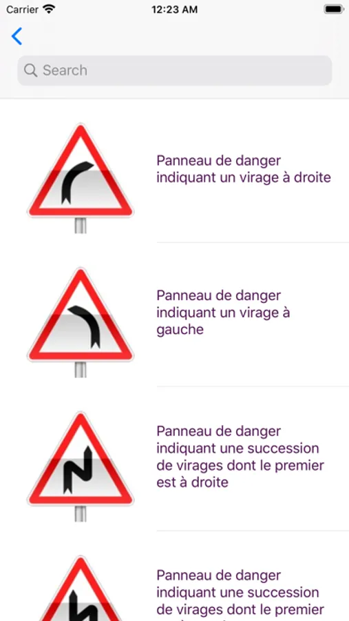 3. **Traffic Signs**: Learn and review all French traffic signs, categorized for organized study.