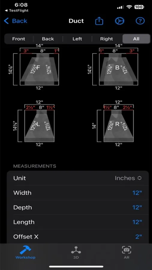 If you've ever found yourself building a transition in the attic of a three story house then you will absolutely love Field Fab. Now you can take your measurements, input them into Field Fab, and you can then view the results via Augmented Reality using your iPhone or iPad's camera before even cutting a single piece of sheet metal! This saves you trips back and forth to the van and saves you the hassle of bringing a large piece of sheet metal into the attic.