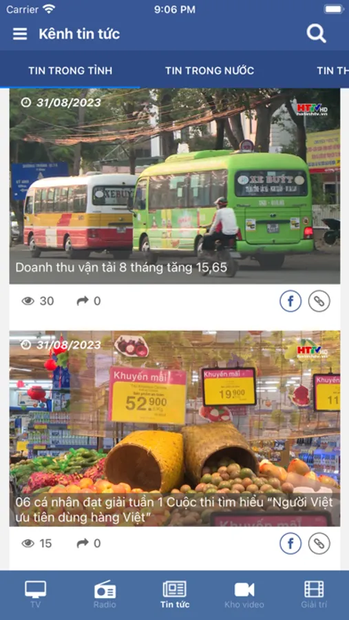 - Gồm các chuyên mục: Tin trong tỉnh, Tin trong nước, Tin thế giới, …