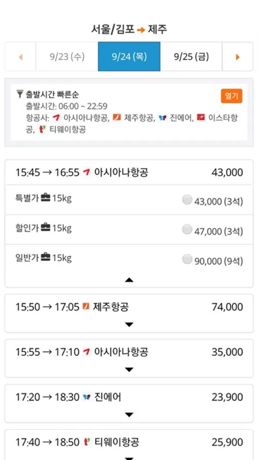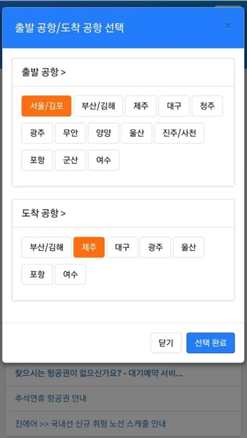 - 국내 항공사 실시간 가격비교와 실시간 예약기능