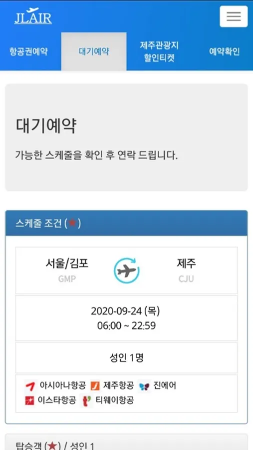 - 마감된 스케줄의 항공권도 대기요청하시면 항공권이 준비되는데로 알려드립니다.