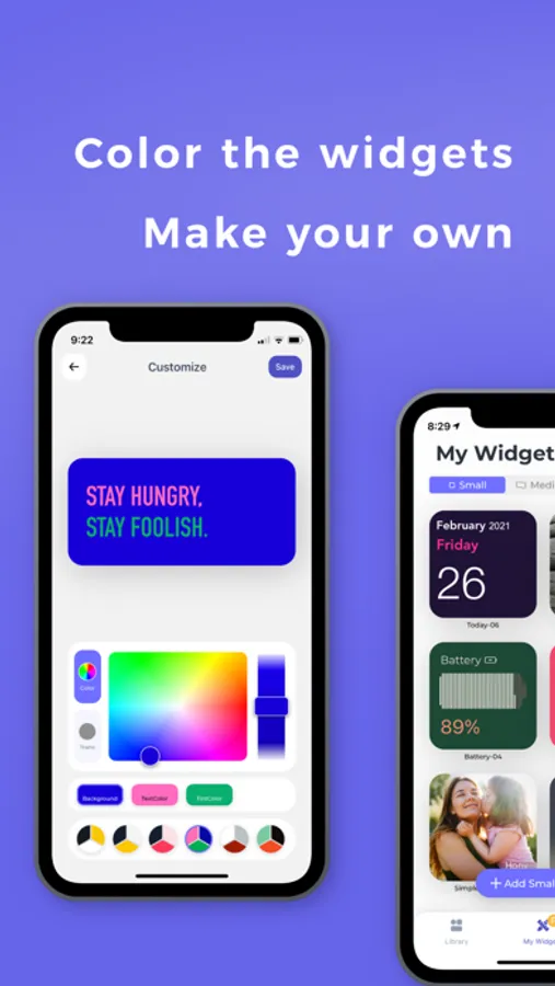 Support the customization of widgets: You can change the color of each part of the widget, of course we also provide a recommended color scheme for you to switch quickly.