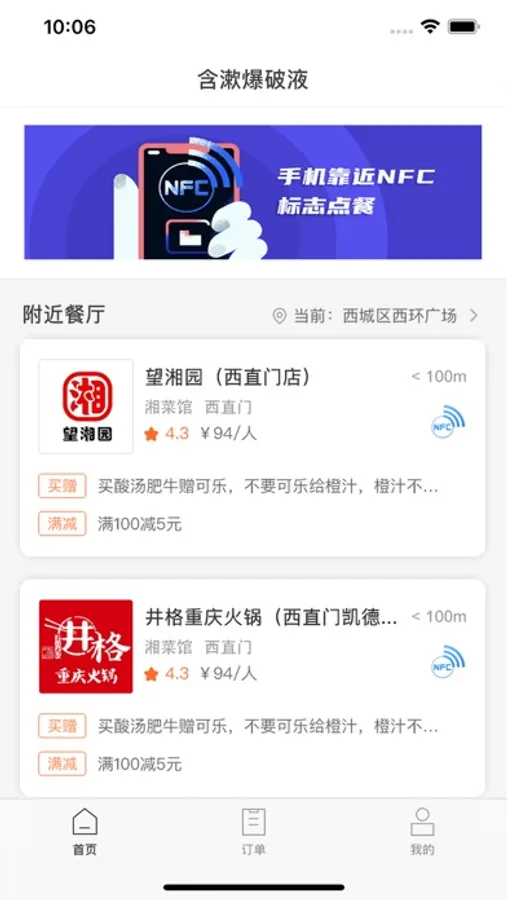 含漱爆破液是通过手机NFC在餐厅内点餐、买单的工具,为食客带来三秒开始点餐的畅快体验