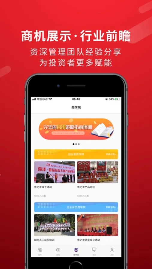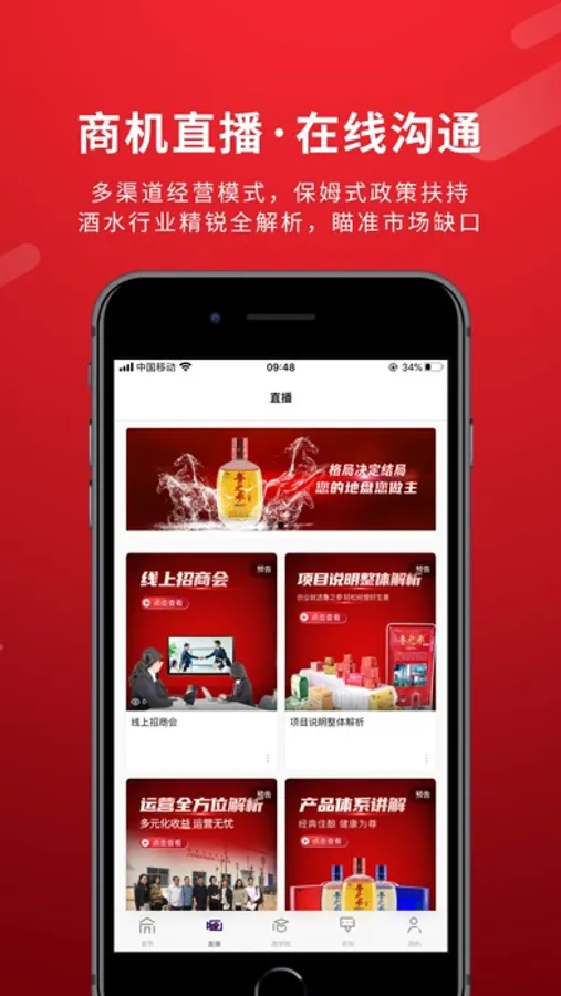 商机直播:通过当下流行的直播方式,让创业者足不出户也能参加线上招商会,更方便、更有针对性地了解项目的整体解析、市场运营战略、代理政策等内容。远程即可参与品牌活动、参观品牌门店,线上观摩,加盟无忧。