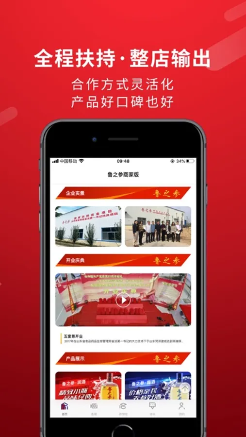 企业全方位展示:各版块清晰介绍企业的产品体系、运营体系以及品牌活动、生产基地实景展示等。通过企业实景,给各位创业者真实展现总部的规模、环境,您不用实地考察也能直观了解项目。通过运营模式的精锐解读,让创业者快速掌握酒水行业投资先机,盈利快人一步。