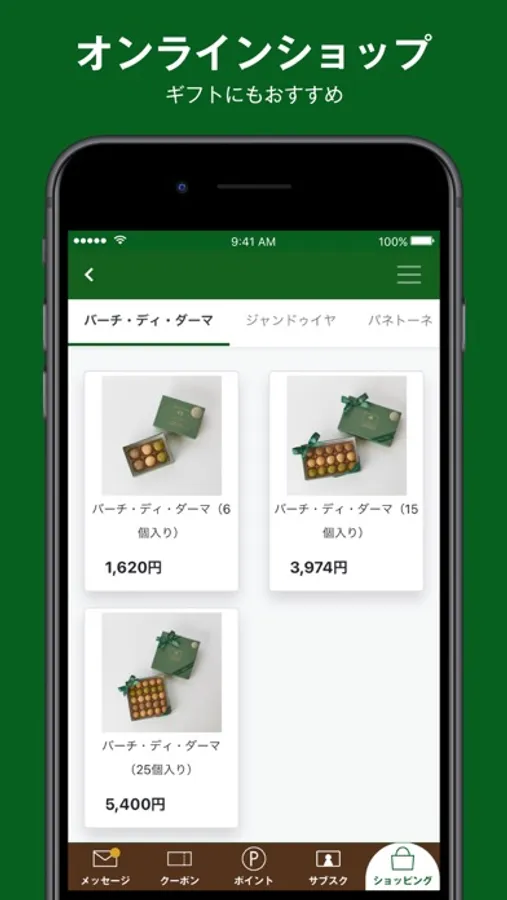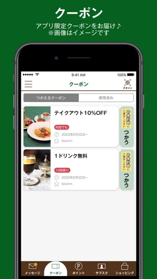 店舗でのご飲食のご利用、公式アプリオンラインショッピングでぜひご利用ください。