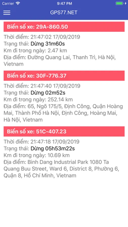 Ứng dụng GPS77 là ứng dụng giám sát hành trình xe theo thời gian thực. Bằng việc sử dụng công nghệ GPS, ứng dụng giúp con người có thể quản lí tốt vị trí phương tiện của mình, lịch sử hành trình, vận tốc, hướng đi của xe tại mọi thời điểm.