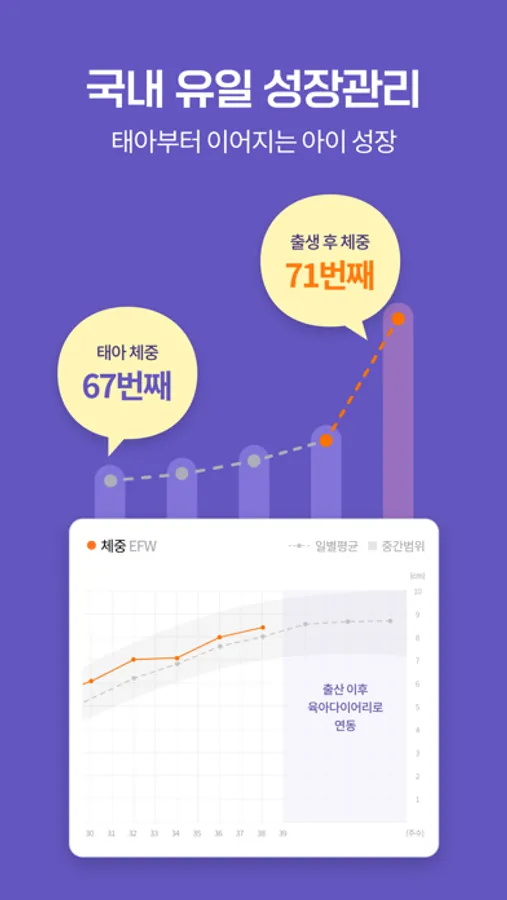 · 출산예정일 기준으로 주차별 태아의 성장 그래프 및 임신 주수별 정보 제공