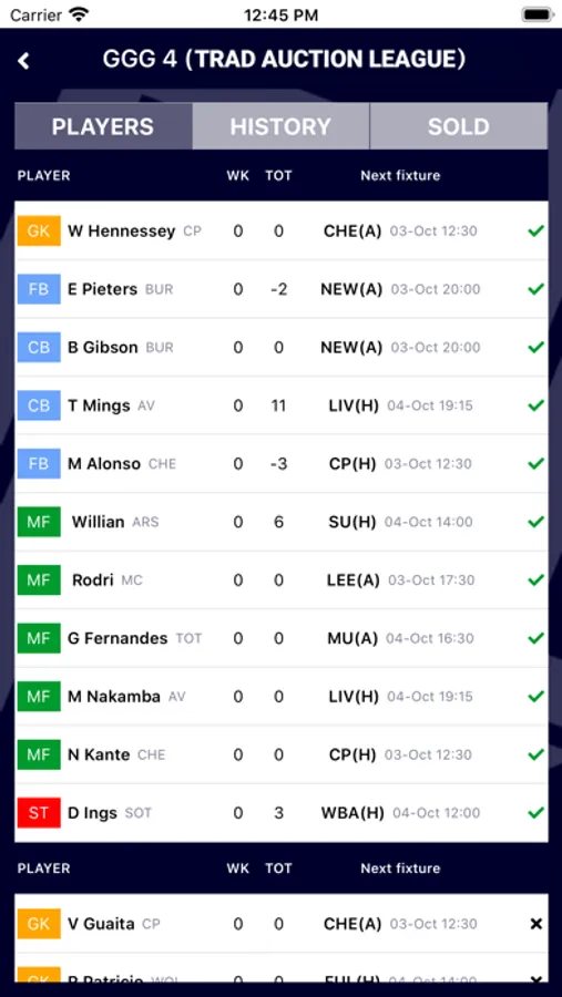 - Select your team and make substitutions
