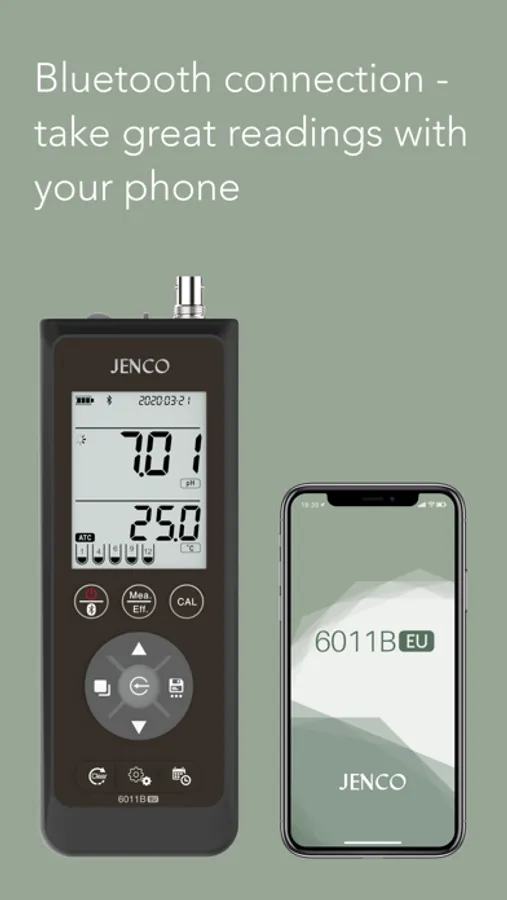 * Easily pair the iPhone with Jenco models 6011B / 6011BEU professional pH/ORP/temperature portable meters.