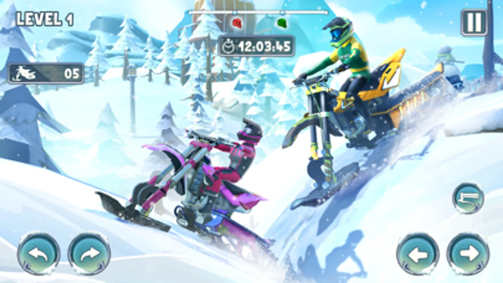 You are about to become a real stunt man of snowy mountain bike racing games because this is the best bike racing stunt game. Now what are you waiting for? Hurry up! Play this stunning Snow Bike Racing game 2020 and have the best bike riding experience here.