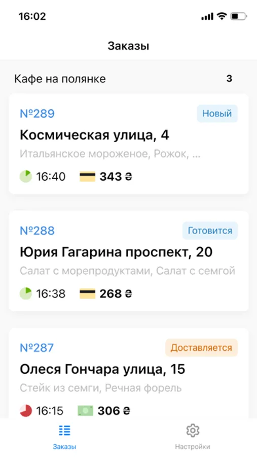 The courier receives notifications about new orders and the readiness of dishes from the cashier and the cook. This helps the staff to work smoothly without additional phone calls.
