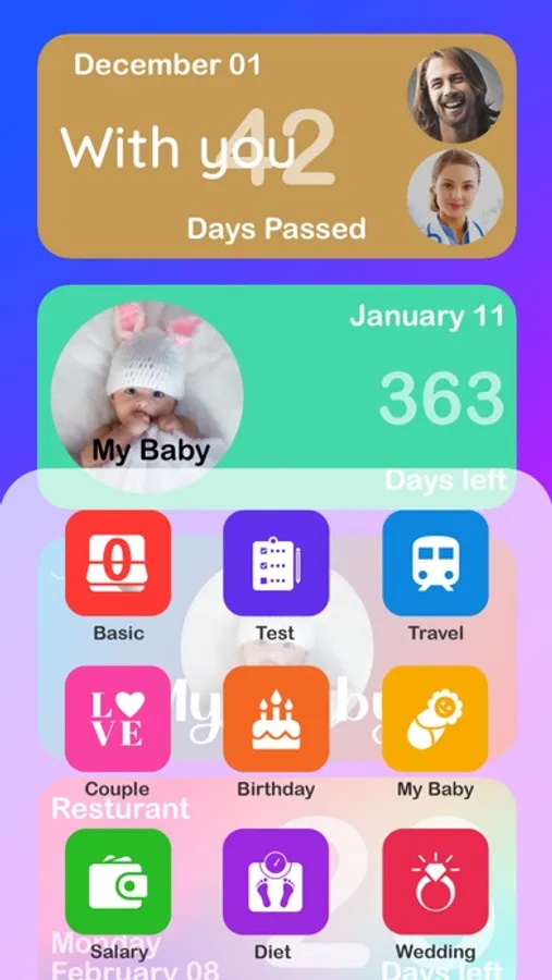 Count down to your next events, your next vacation, your favorite concert, your next schedule and more.