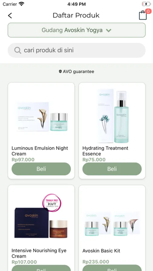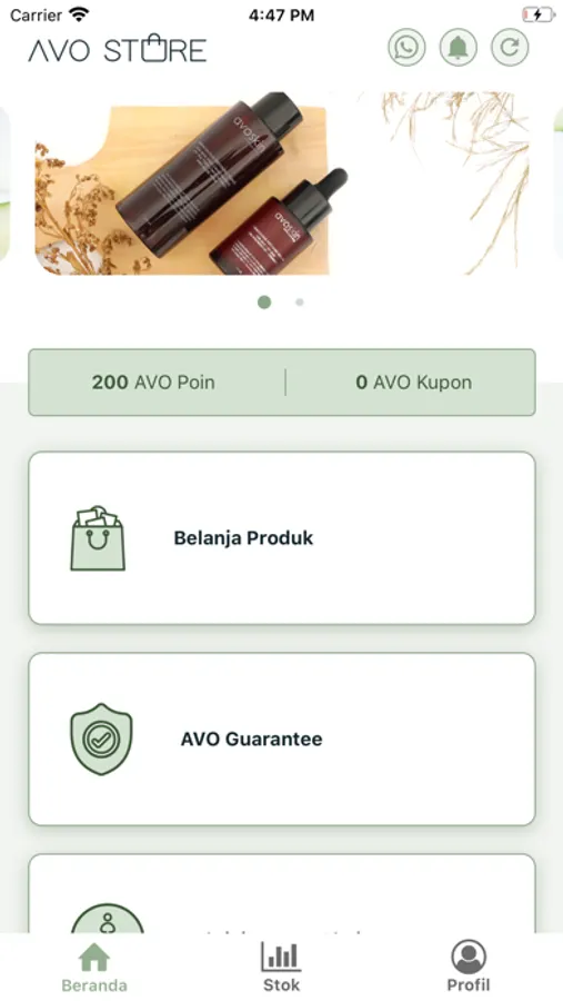 Nikmati kemudahan bertransaksi produk-produk Avoskin dengan menggunakan aplikasi Avo Store. Unduh aplikasi ini dan pastikan Anda terdaftar menjadi reseller resmi Avoskin. Isi data diri dengan lengkap agar Anda bisa melakukan transaksi pembelian produk, baik ke Avoskin pusat maupun ke sesama reseller. Gunakan Avo Store App sebagai acuan progress penjualan maupun level tertentu yang ingin dicapai