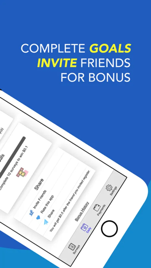 Unlike most other apps that pay you real money who offer limited ways to get paid, we offer bonus for your engagement, this can help you earn extra cash. For example, you can get increasing bonus by tapping check-in button in daily basis, and get even more bonus by achieving goals or inviting friends.
