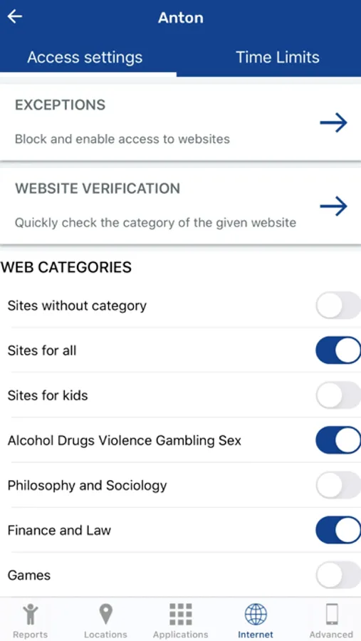 Ứng dụng giúp cha mẹ có thể quản lý việc sử dụng điện thoại của con, như giới hạn truy cập Internet, giới hạn thời gian chơi games, giới hạn các địa chỉ được truy cập, ...