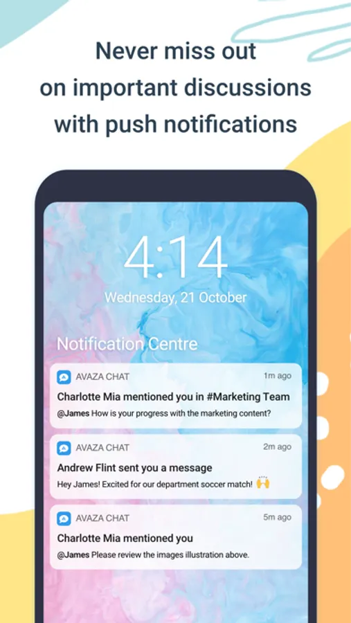 - Push Notifications: Never miss out on important discussions with push notifications. Mute individual chats or customize your notifications settings in Avaza web app.
