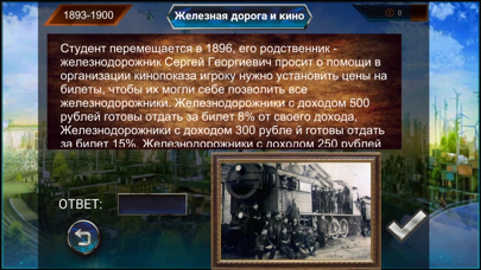 Игровая викторина на тему истории предпринимательсва г.Новосибирска и Сибири в целом. Приложение содержит вопросы по нескольким эпохам развития Новосибирска. По ответам составляется рейтинг игрока. Приложение будет использоваться вузами-партнерами г.Новосибирска для учета знаний по теме предпринимательства. Материал для вопросов собран на основе данных музея Новосибирского государственного университета экономики и управления.
