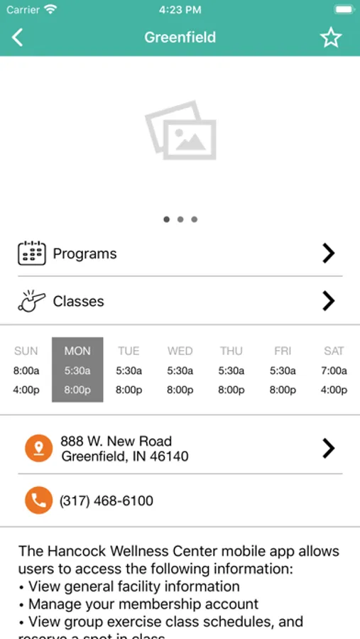 The Hancock Wellness Center mobile app allows users to access the following information: