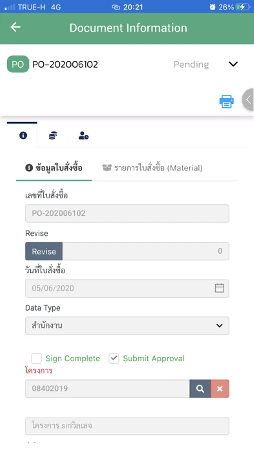 แอปพลิเคชั่นสำหรับ การตรวจสอบการอนุมัติของเอกสารประเภทต่างๆ โดยการเชื่อมต่อกับ Mango ERP Anywhere Software