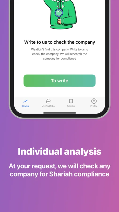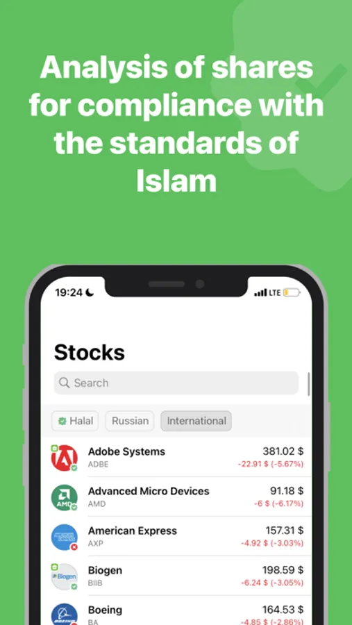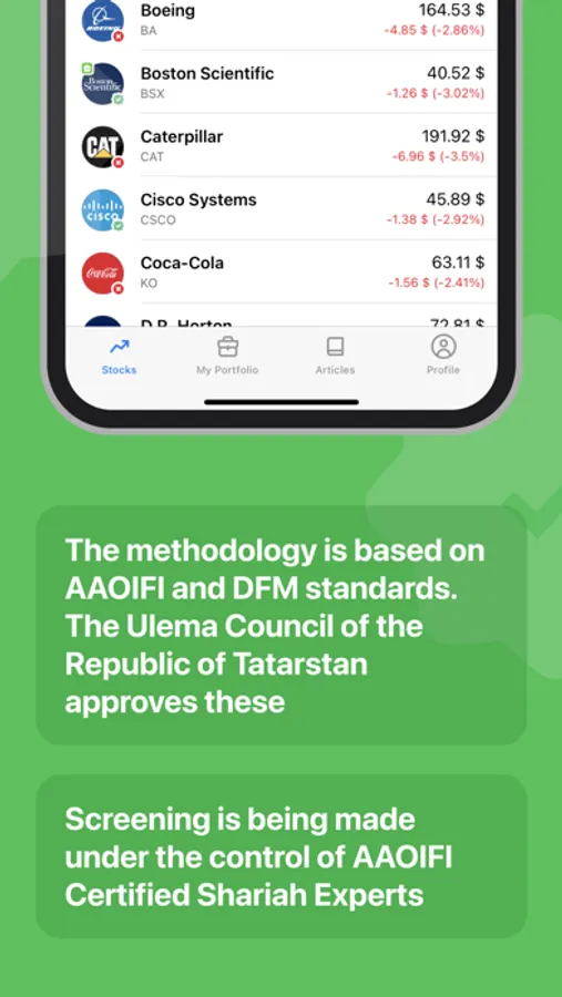 - Не нужно самостоятельно проводить анализ компаний, в приложении доступен детальный анализ на соответствие нормам Ислама;