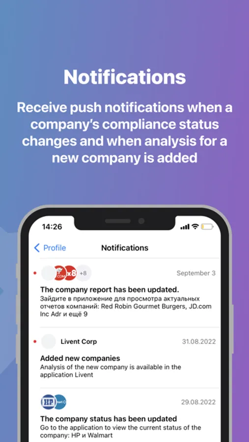 - Избранные: отмечайте компании как избранные, следите за обновлением статусов;