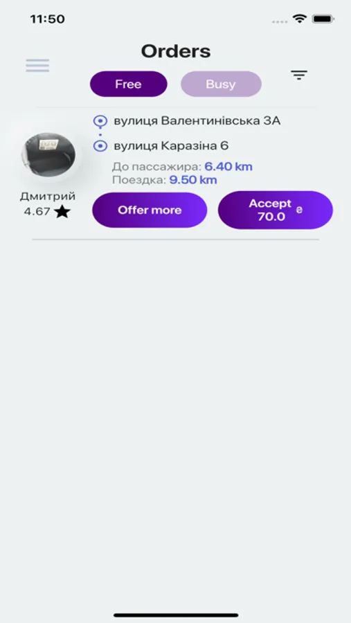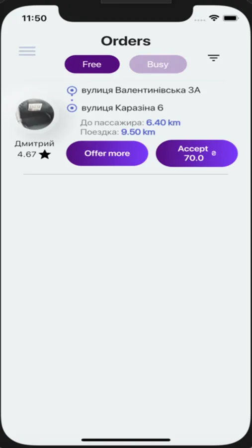3) Водители видят ваше предложение и откликаются. Могут согласиться на вашу цену, а могут предложить свою.