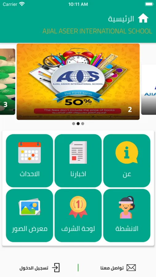 this application for Ajial Aseer School students and their parents that allow students to show and review their activity , absence ,lesson table and also answer homework , and this also make sense for parents as they can review their children activities.