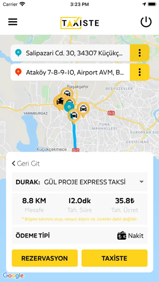 Taxiste kullanıcı uygulaması ile konumuna en taksi durağından en yakın taksiyi çağır veya rezerve et. Kaliteli yolculuğun kaliteli adresi Taxiste hemen gelsin.