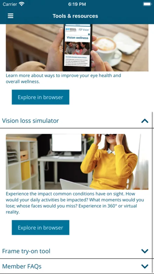 Find in-network eye care professionals nearby, then get directions, or call to schedule an appointment. Access your ID card and personalize it with a pic (optional). Plus! Track your glasses at our labs and submit an out-of-network claim at the snap of a photo. Also enjoy access to a vision loss simulator, frame try-on-tool, personal risk calculator, and a member blog.