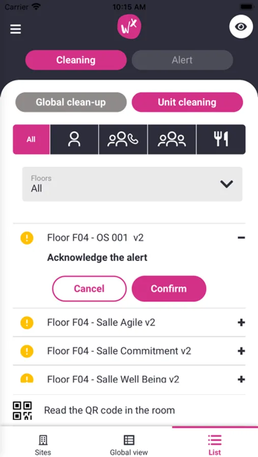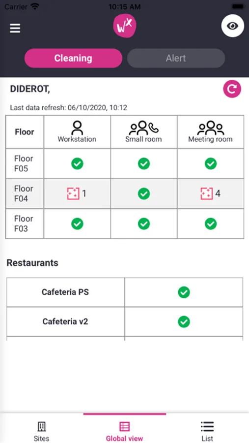 - View in real time the areas to be cleaned and update their status to inform your collaborators