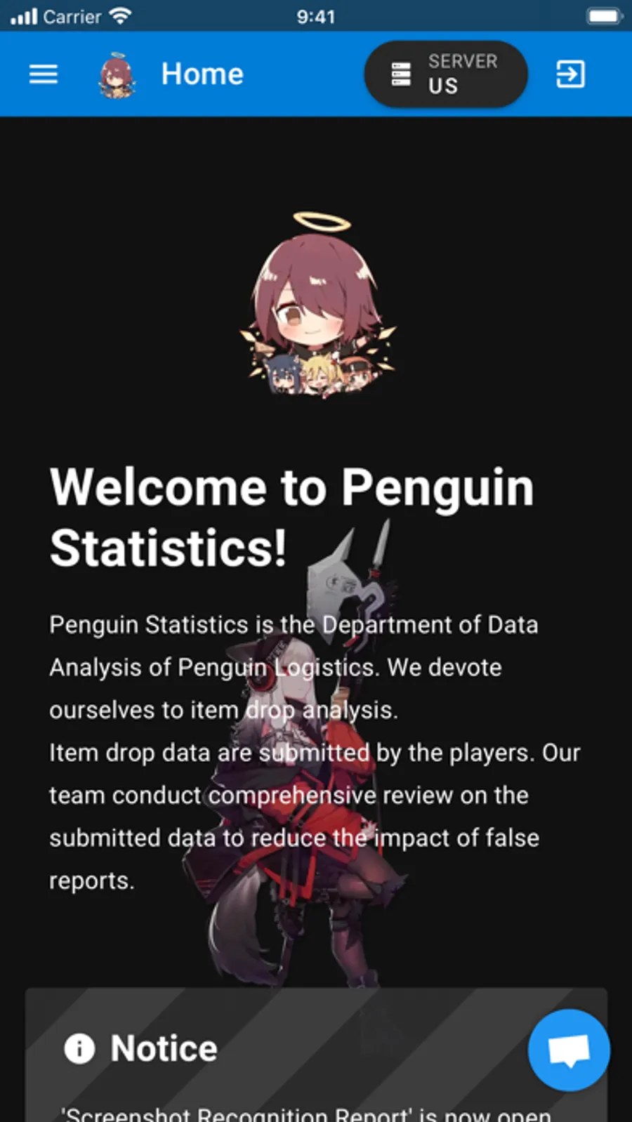 This App is the official App of the website "Penguin Statistics". The same privacy policy and data protection policies are applied, as "Penguin Statistics" website.