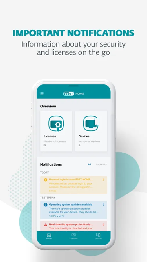 These days it’s normal to have information about every aspect of your life at your fingertips. The online protection of your family and home should be part of that. ESET HOME app provides you with comprehensive oversight of your complete internet security wherever you go, whenever you need it. Stay on top of things with numerous benefits at your disposal.