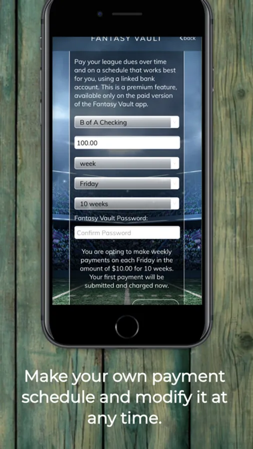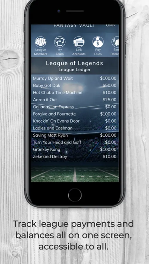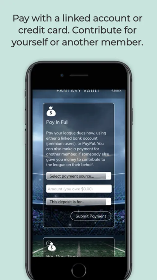 Track and manage the financial aspects of your league all on one screen. Pay into your leagues with more account options. Pay in full or over time, based on the schedule you configure yourself.