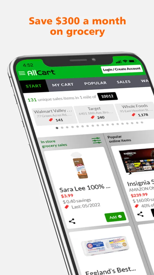 AllCart help the average household of 4 saves $290 a month on groceries ($400 for a family of 6)
